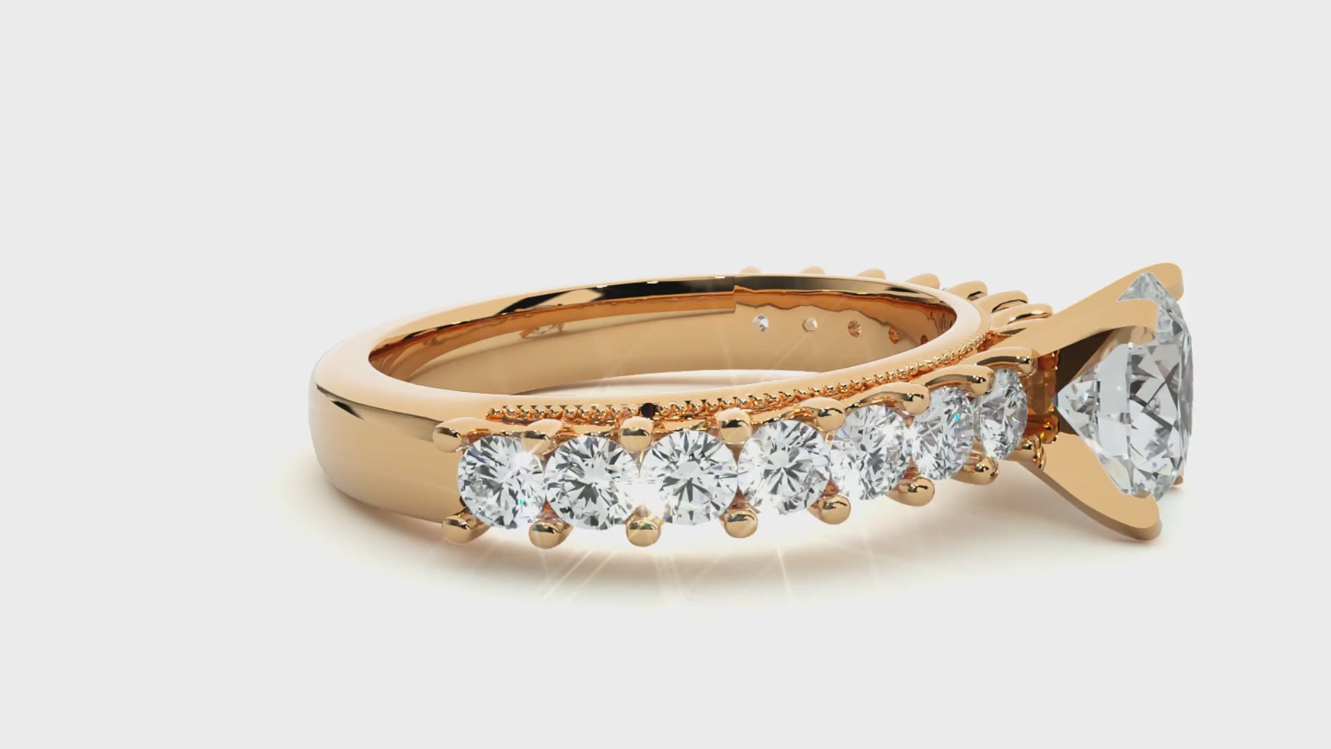אריה | טבעת יהלום עוצמתית עם שיבוץ צד עשיר ומדויק