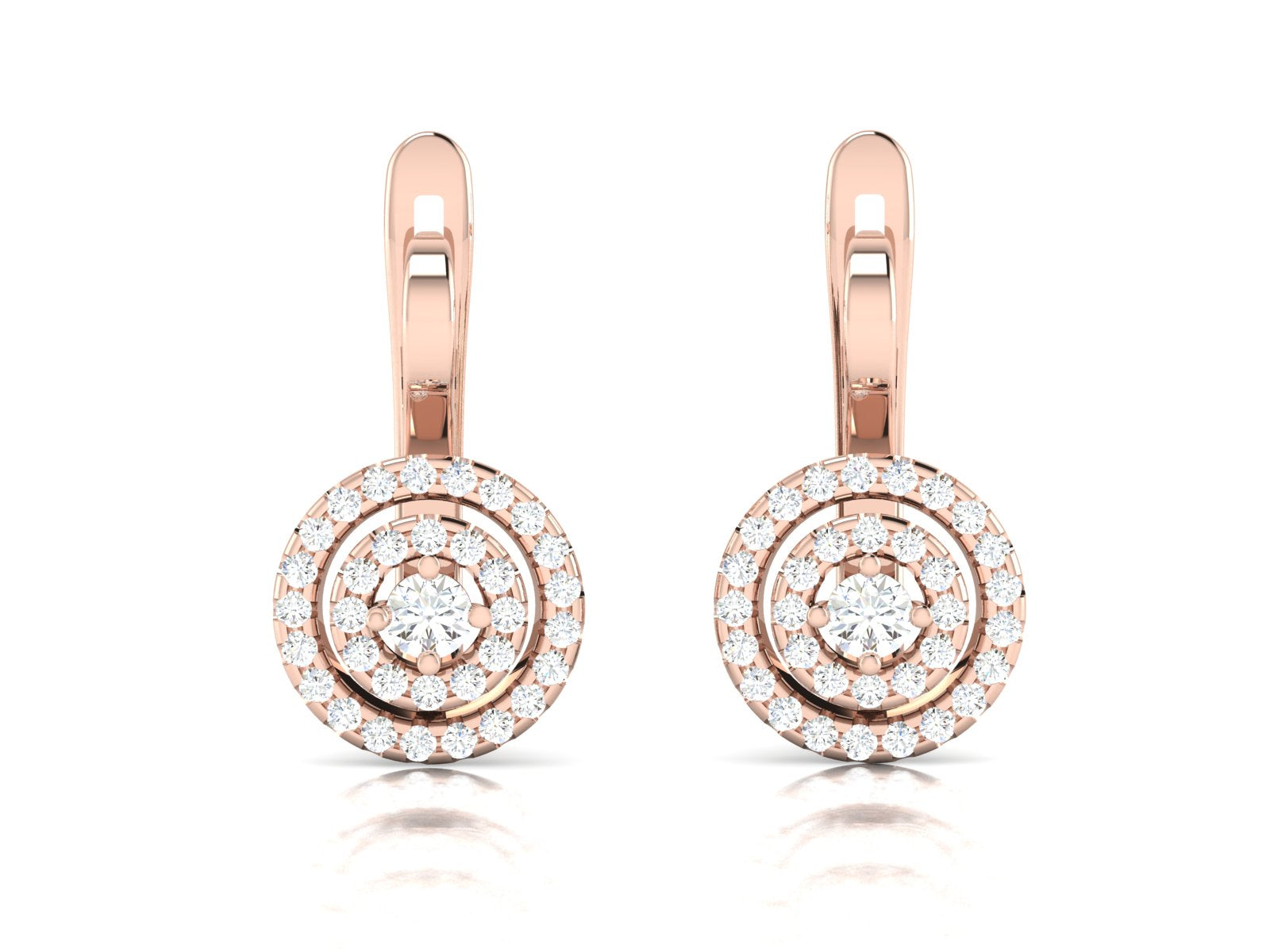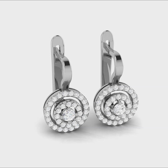 עגילי אריה משלבים עיצוב עגול מדויק עם שלוש שכבות של יהלומים לנוכחות שובת לב. יהלום מרכזי בכל עגיל מוקף בשיבוץ צפוף ועשיר המעניק מראה זוהר ונועז.