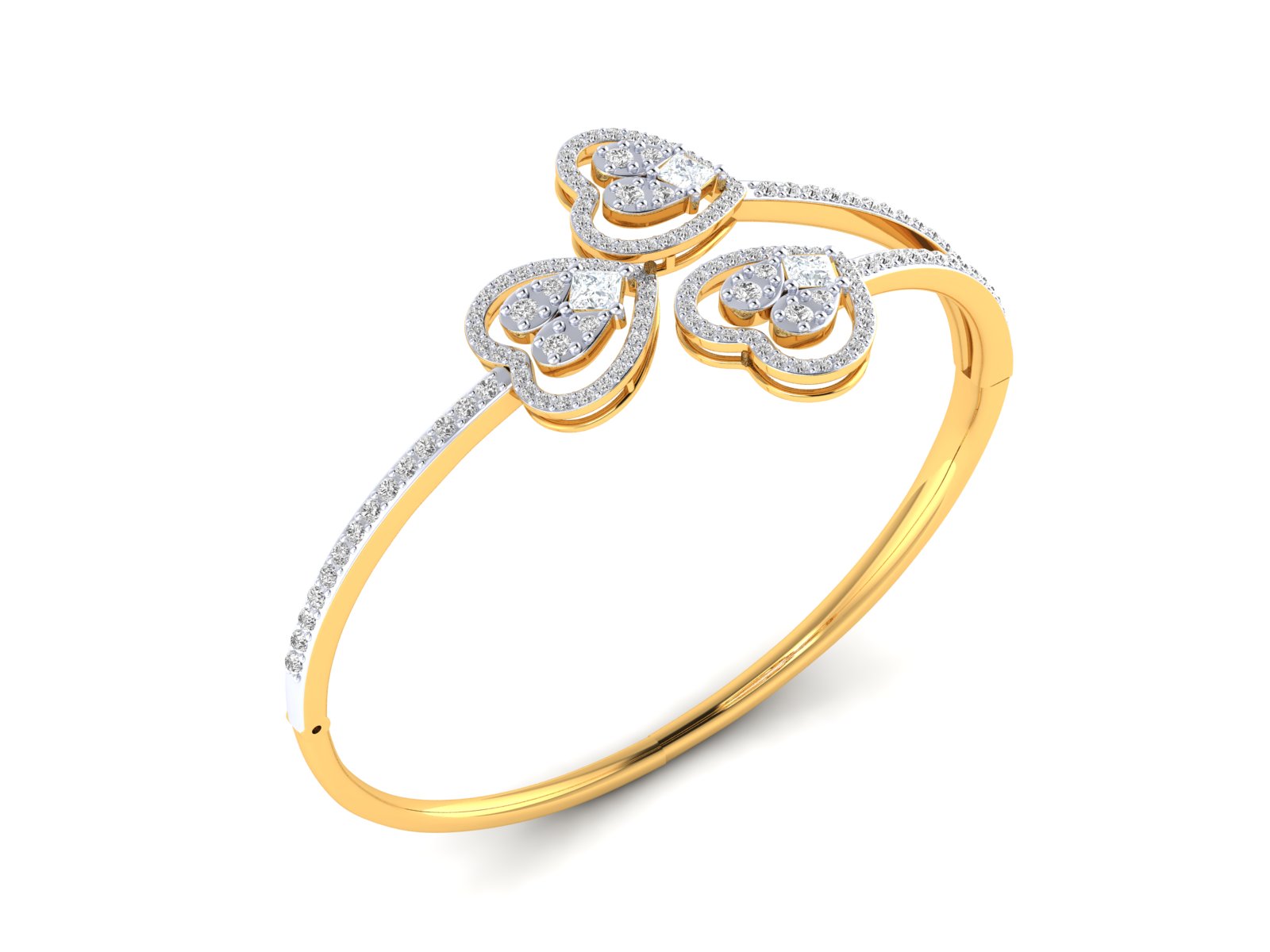 ג'ייד | צמיד זהב בעיצוב לבבות עם שיבוץ יהלומים