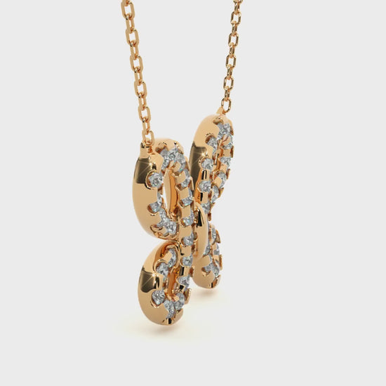 שרשרת דלילה היא תכשיט שמסמל קלילות, חופש והתחדשות – תליון פרפר עשוי זהב ומשובץ יהלומים מנצנצים בקווים מעוגלים ורכים, לעיצוב נשי והרמוני.