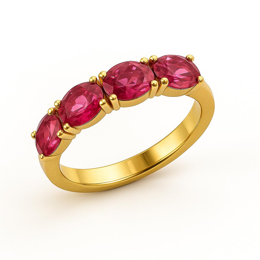טבעת דקוטה משלבת עיצוב קלאסי עם חמישה קראטים של צבע ונוכחות. שורת אבני חן יוקרתיות – לבחירתך: ספיר כחול, רובי אדום או אמרלד ירוק – מעניקה לכל טבעת אופי אחר, עם בסיס זהב מלוטש ושיבוץ מדויק.