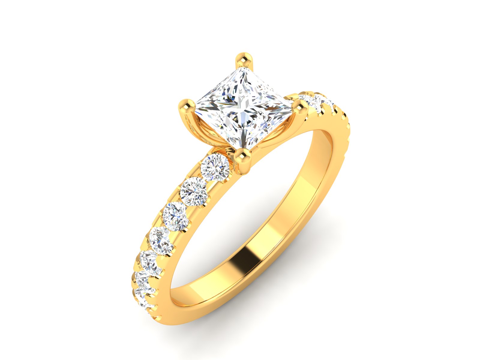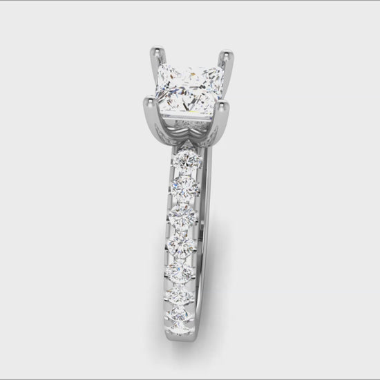 לילי | טבעת יהלום פרינסס עם שיבוץ צד – 0.70 קראט מרכזי, משקל כולל 1.22 קראט