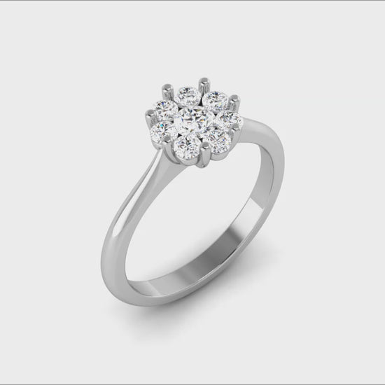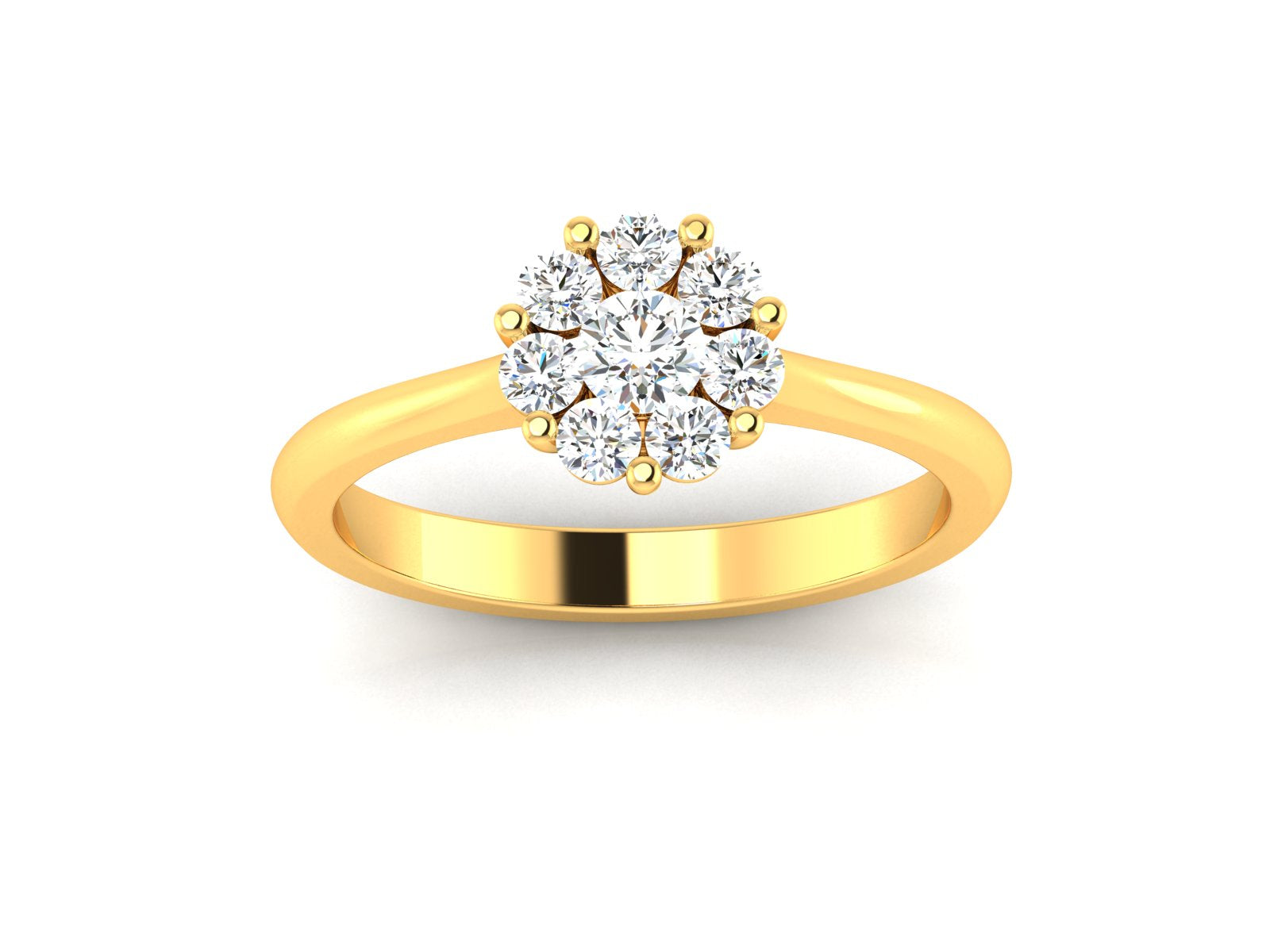 מלוינה היא טבעת רכה ורומנטית בעיצוב פרח קלאסי. יהלום מרכזי עגול מוקף בשבעה יהלומים נוספים, יחד יוצרים פריחה אלגנטית שמשדרת טוהר, נשיות ואור פנימי. העיצוב הנקי בשילוב זהב מבריק הופך אותה לבחירה מושלמת לכל מטרה – הצעת נישואין, מתנה עם משמעות, או פשוט כתכשיט יום-יומי שמעלה חיוך.