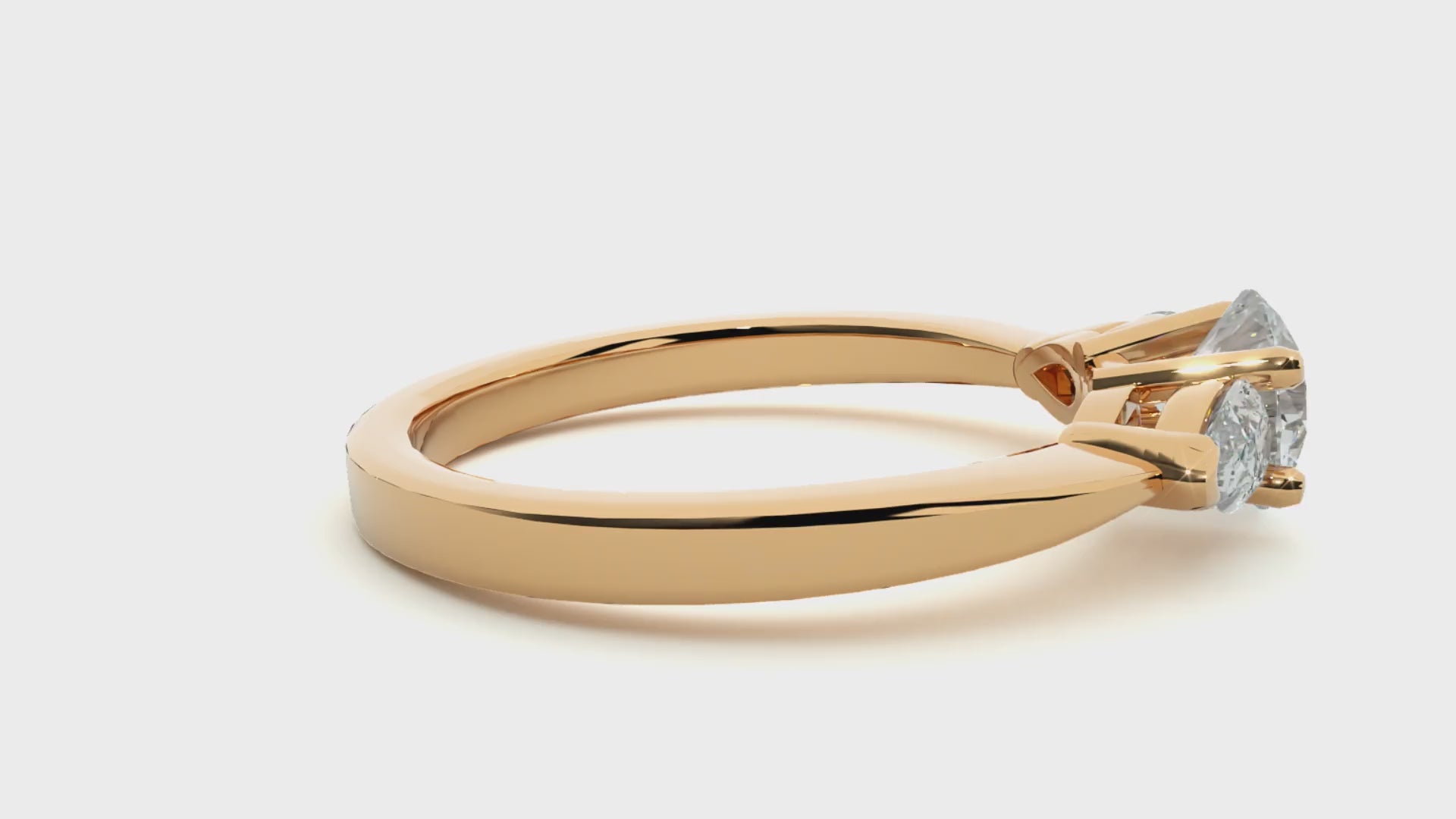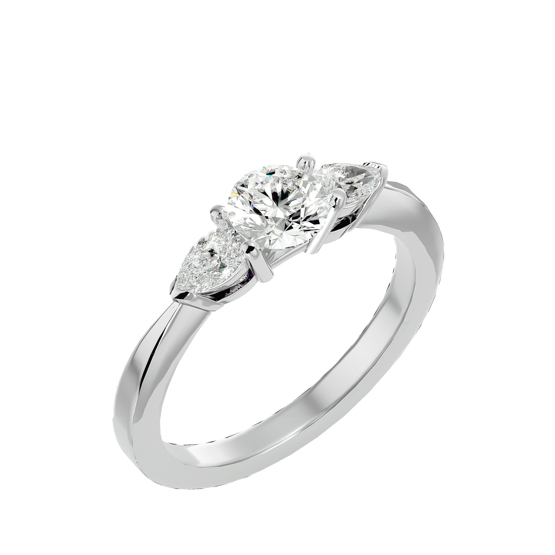 סקיילר | טבעת שלוש אבנים עם יהלומי טיפה בעיצוב רך ונשי