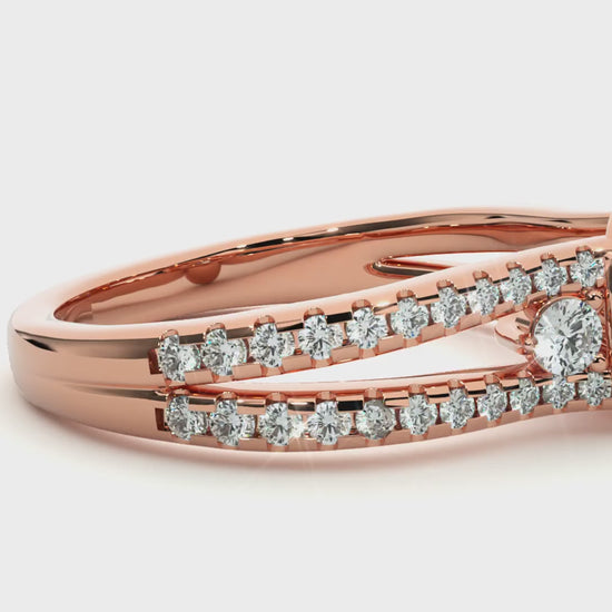טבעת "פייסלי" מהפנטת במראה רך ואלגנטי, עם יהלום מרכזי בחיתוך קושן שמוקף בהילה של יהלומים קטנים להעצמת הברק. עיצוב הזרוע המפוצלת משובץ בעדינות ומחובר בקשת רכה ליהלום המרכזי – ליצירת מראה נשי, עשיר ומאוזן. טבעת שמשדרת חום, רוך ויוקרה.