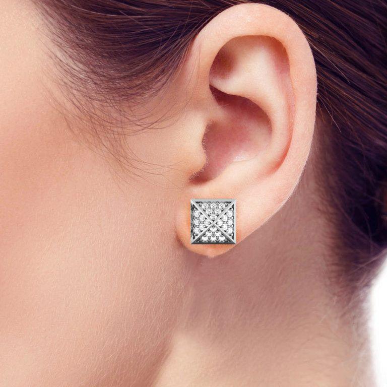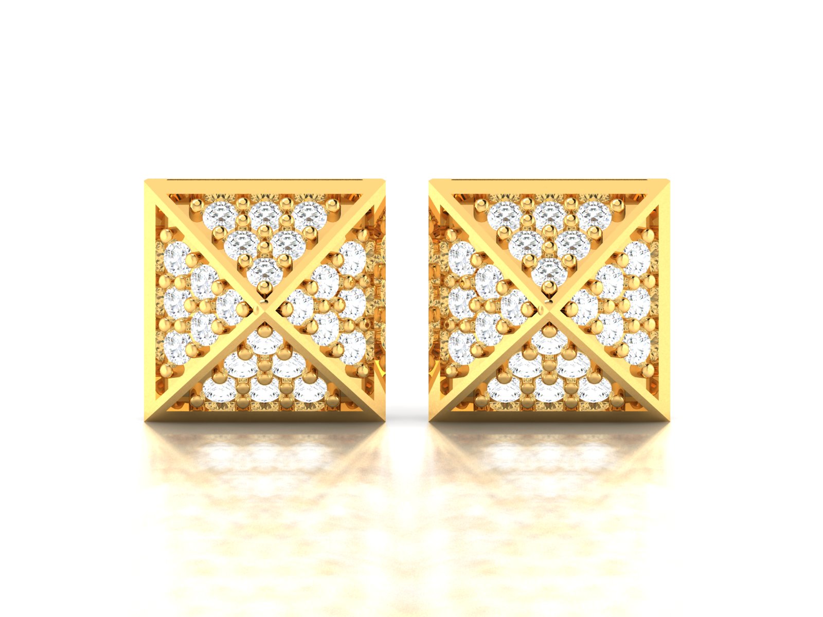 עגילי ריילי מעוצבים בקווים מדויקים ונקיים, בשילוב מסגרת זהב חלקה ושיבוץ צפוף של יהלומים נוצצים. עיצוב גיאומטרי ייחודי שמעניק מראה עוצמתי, אלגנטי ומודרני – מושלם לנשים עם סגנון חד.